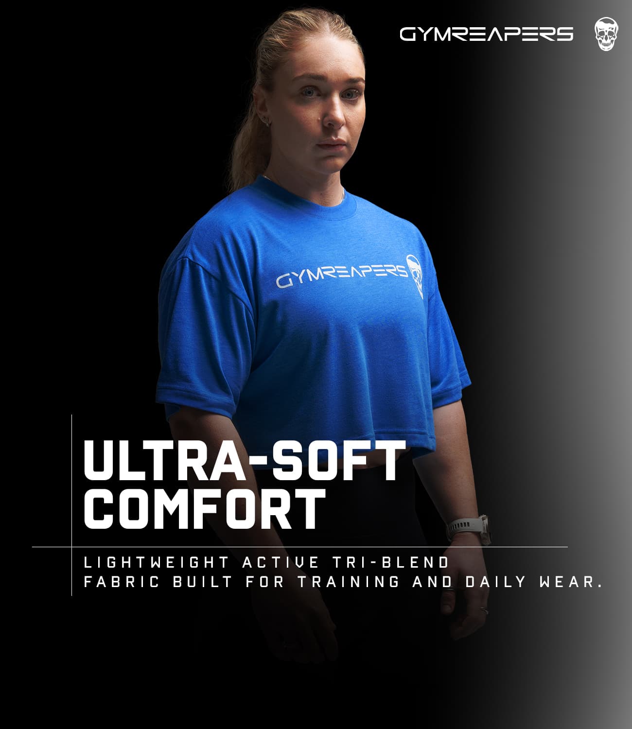 The Active Tri-Blend Cropped Tee delivers ultra-soft comfort with lightweight performance. The tri-blend fabric balances durability, breathability, and stretch to create a shirt that feels smooth, flexible, and easy to wear through training and everyday activity.