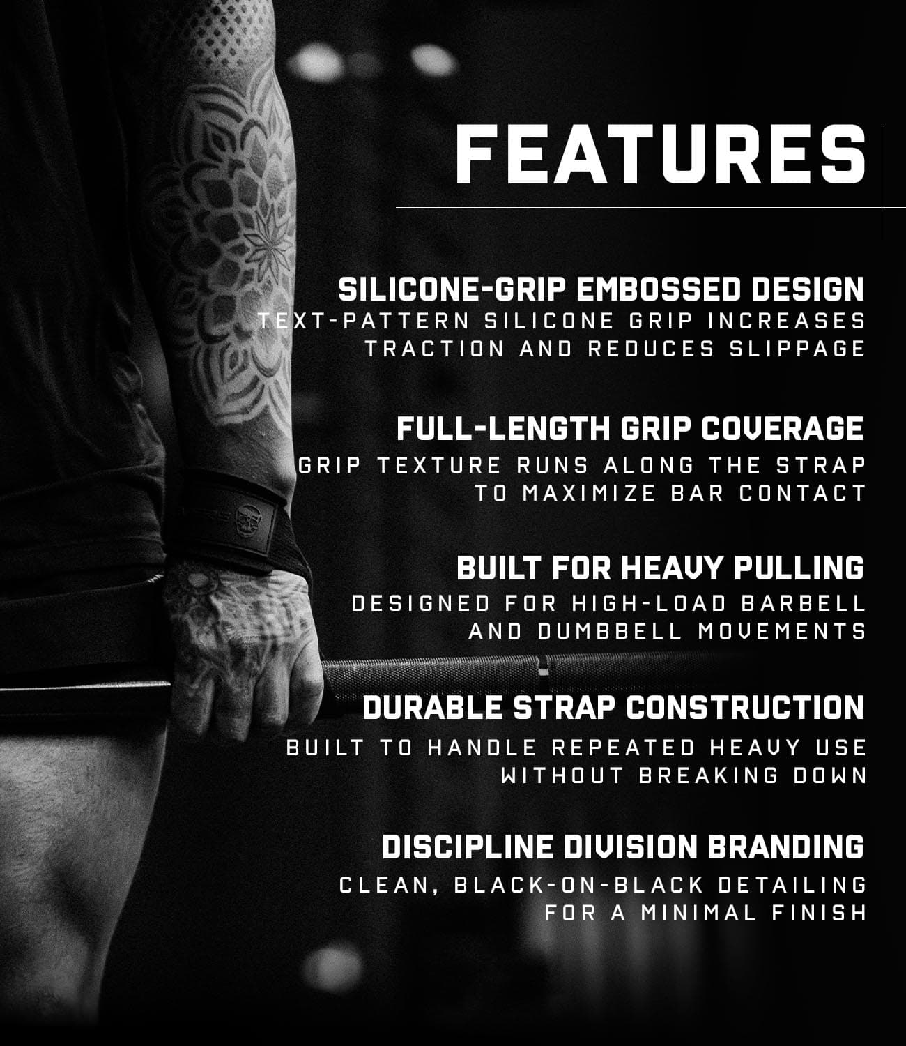 DISCIPLINE DIVISION LIFTING STRAPS FEATURES: