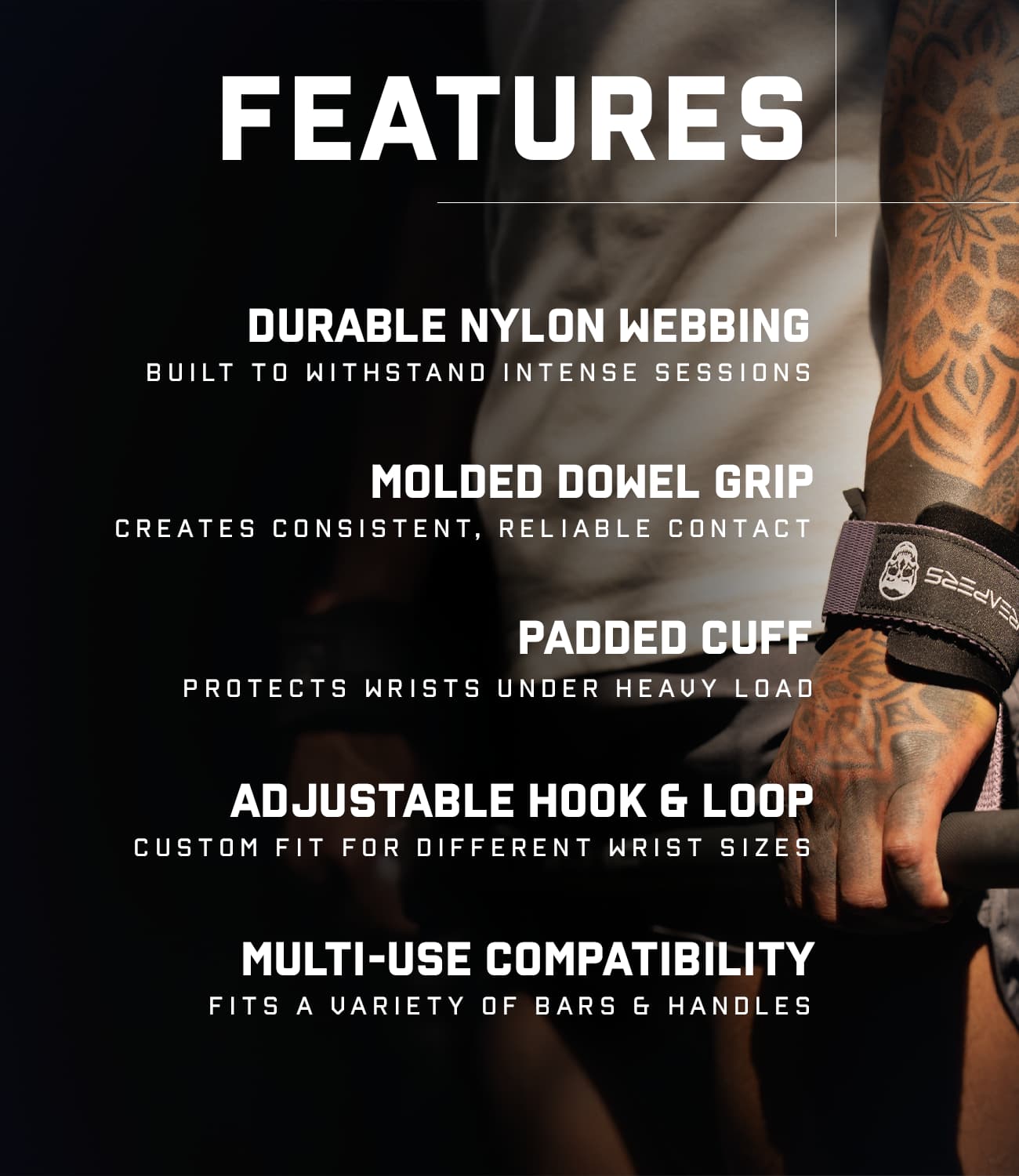 DOWEL LIFTING STRAPS FEATURES: